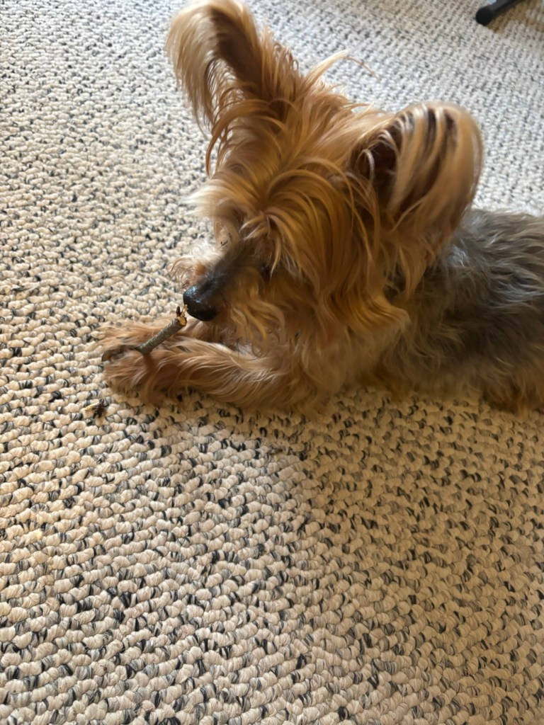 Eventually, Miss Janet started to worry I might break a tooth or hurt my mouth trying to fight for the stick. So, she’d let me bring the stick inside and try to distract me again or wait till I got bored and then throw it away.