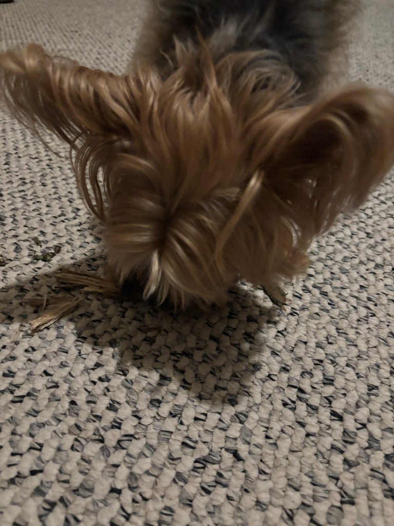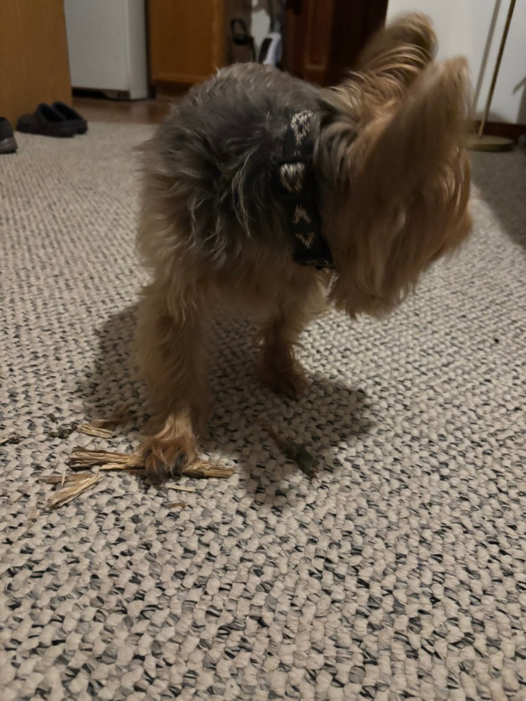 I love chewing on sticks. It calms me down and keeps me entertained. But Miss Janet doesn’t like me to chew on sticks. She’s concerned I will swallow a strip of wood and upset my small and delicate digestive system. She’s very careful about what goes in my gut. Clearly, I am not careful. I just want a stick.