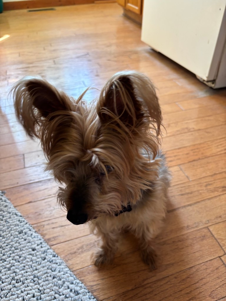 Here’s a new question for Clutch, the Yorkie: Clutch, have you ever stolen food? What happened?