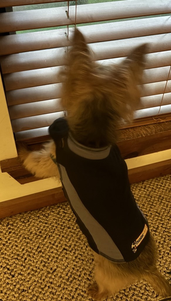 I feel pressure changing in my ears and sinuses. The atmosphere is in upheaval. I’m a Yorkie, so I don’t like change unless I’m the one causing the change. I don’t like to be caught off guard.