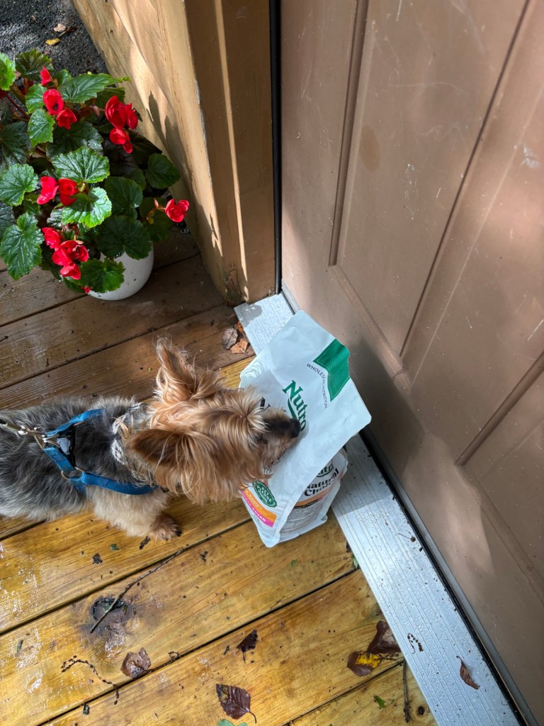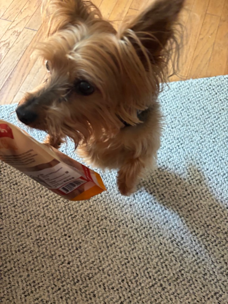 When we get home, I wait impatiently for Miss Janet to bring the shopping bags upstairs. She is so slow. I would help if I could, but I don’t have opposable thumbs. And let’s be honest, I wouldn’t bring the bags upstairs. I’d open them in the driveway and grab a tasty treat. Or I’d run off and hide a bag somewhere for later. Instead, I have to wait till all the bags are in.