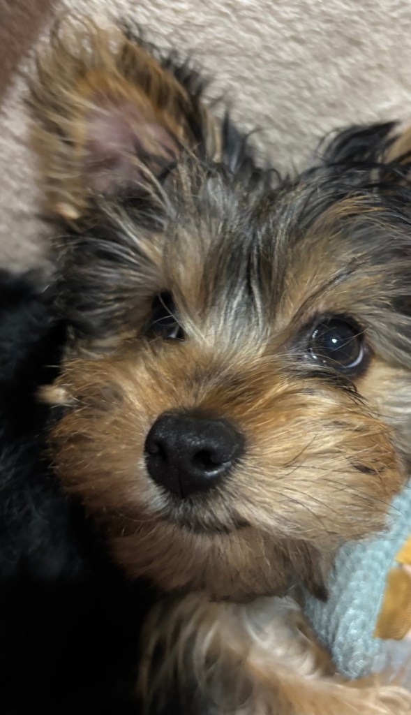 Later in the evening, when I normally sit on the couch at home with Miss Janet, she let me sit in a blanket on her lap. Beauregard sat on the couch next to us. He had a seahorse toy he was willing to share with me. He is very gentle and kind.