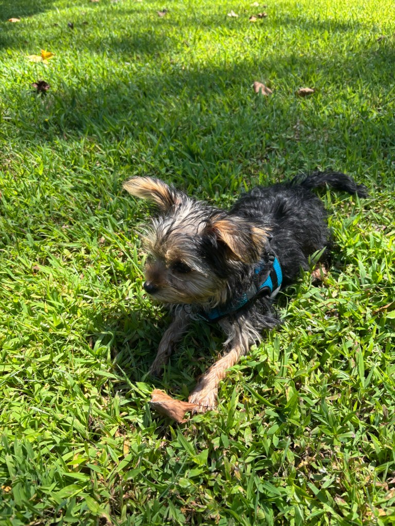 When we needed to go outside after dark, Miss Janet took us both out at the same time. She kept me on my harness and leash so Beauregard wouldn’t accidentally run over me. But she wanted him to guard us outside at night. He was very kind to stay near us and stand guard, but he didn’t bother me at all. He’s a good big brother.