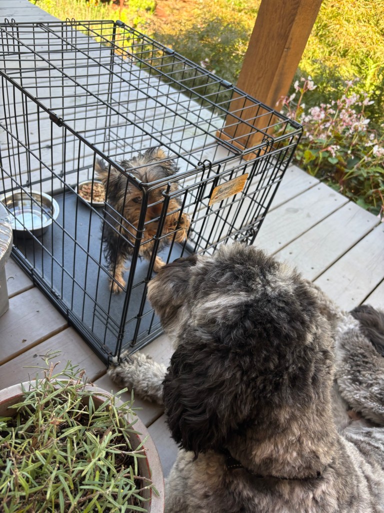 I was in my sleeping crate in the bedroom, just waking up and ready to explore an amazing new day. I heard the strangest noise coming from the living room. It sounded like Miss Janet was packing up my chill-time crate and carrying it outside. Was this a bad dream?
