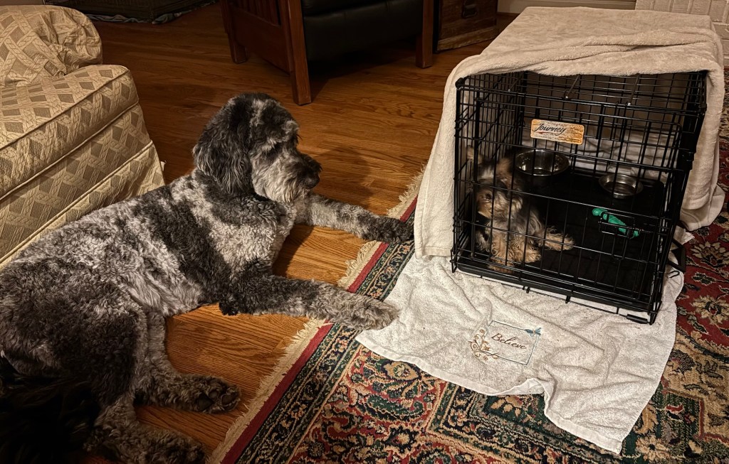 Miss Janet realized I was afraid, so she took one of my blankets and put it over my crate. She kept it open where I could see her and Beauregard. But the rest of the house was blocked out. I felt safe and cozy, so I could relax.