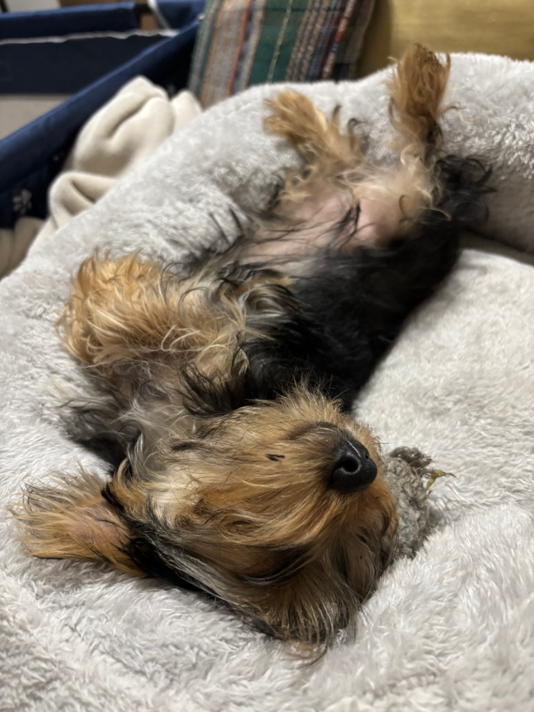You might wonder why my dog bed is on the couch and not on the floor. We Yorkies like to sit up high, so we can see everything that’s going on. You just have to make sure we don’t decide to jump down on our own. Just be our personal elevator and lower us to the ground, please.