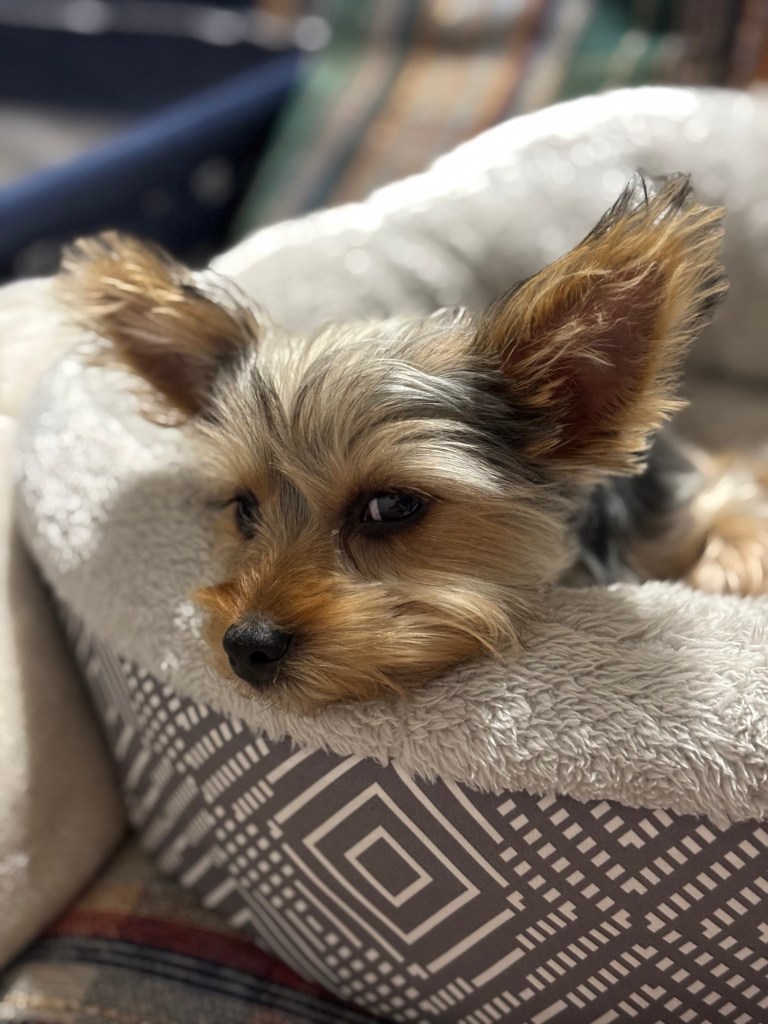 I’m super proud to look like a grownup Yorkie. I love my new coat. I can see with my big Yorkie eyes and hear with my big Yorkie ears. It’s easier to shake off rain. I feel more comfy all the time.