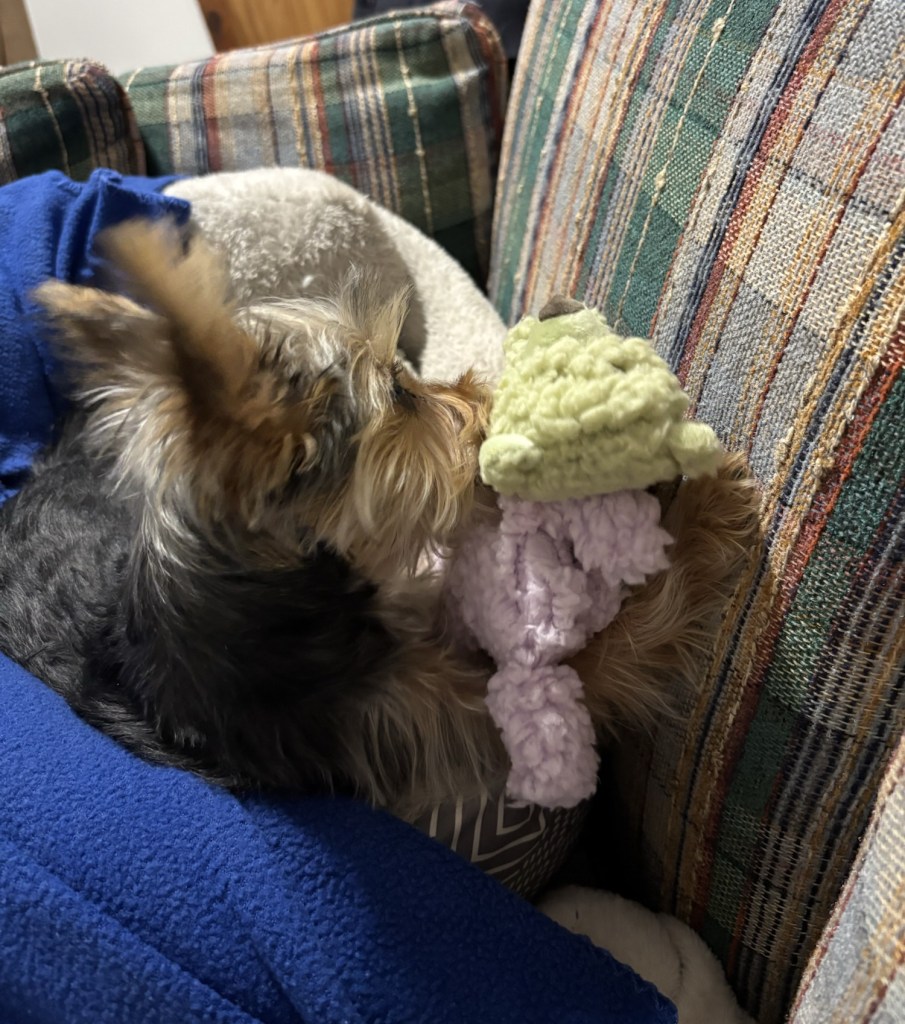 - My soft dog bed on the couch for giving me a cozy place to nap.