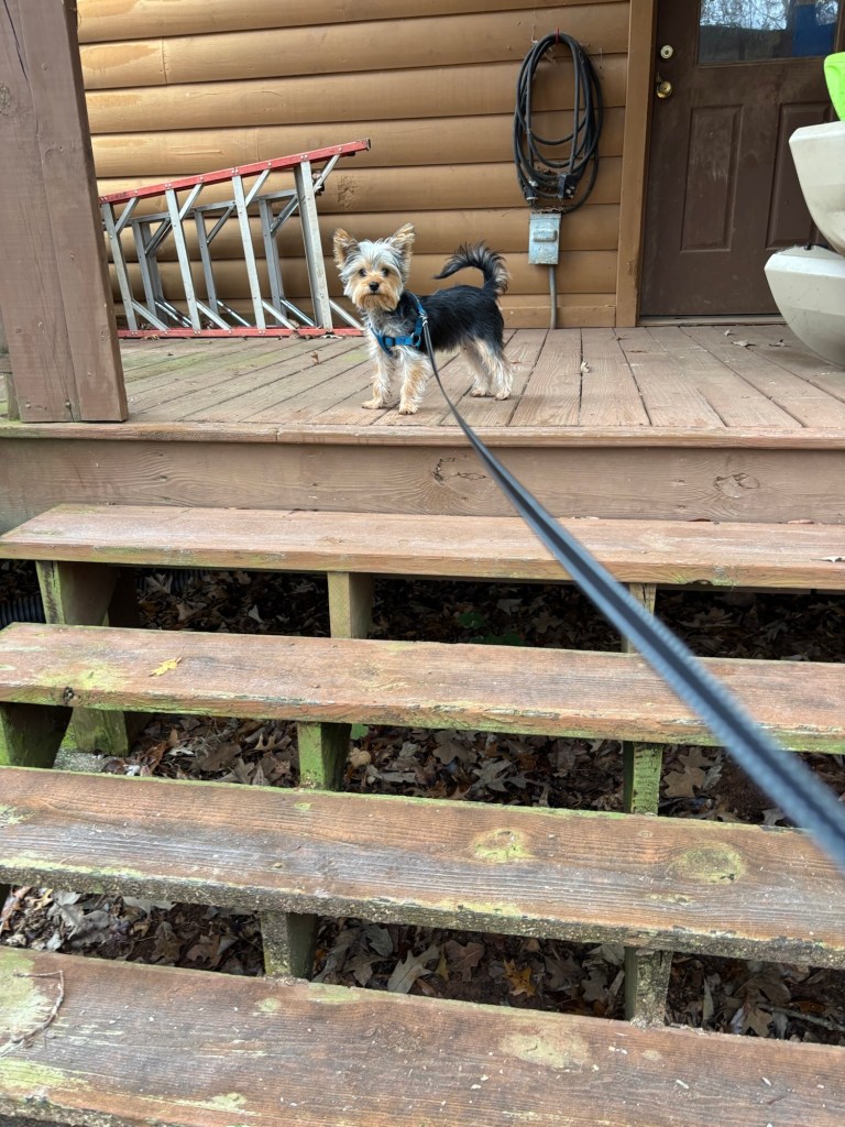 But first, I wanted to practice my five-step descent on the back porch stairs. The steps weren’t covered with frost, so I climbed up easily and did a perfect descent. I did one more for fun, got my yummy treat, then headed inside for my blanket fort.