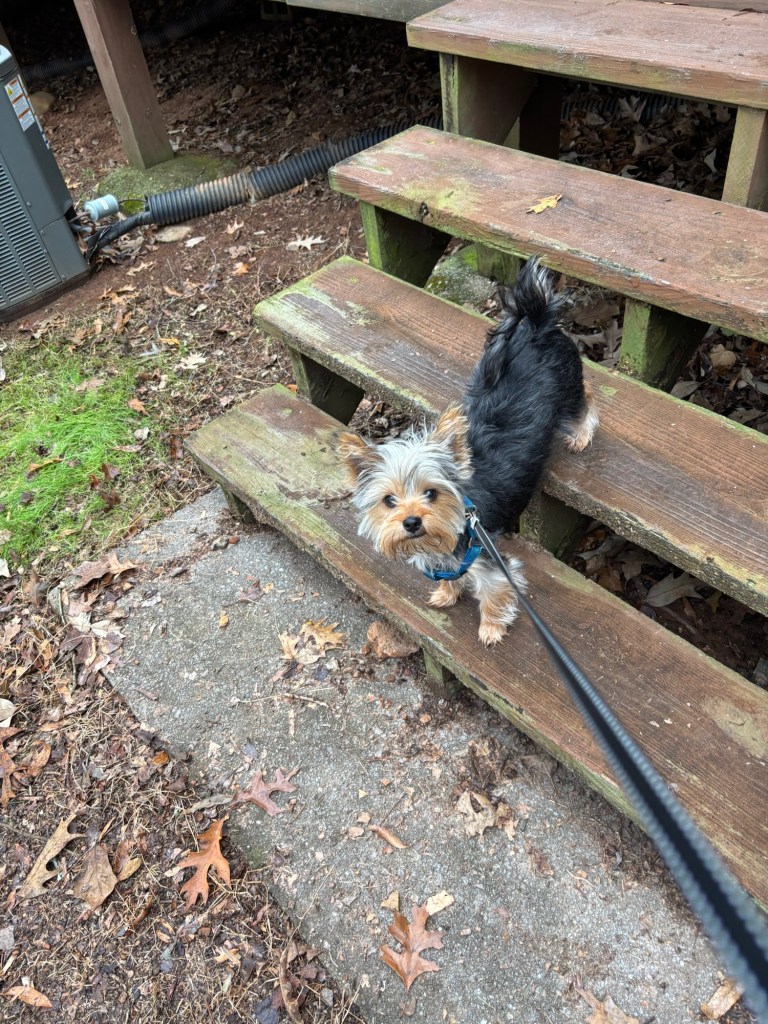 Thankfully, Miss Janet realized walking down the slippery hill wasn’t a good idea. We moved into the backyard. It wasn’t as icy. The smells were amazing. Everything smelled stronger: the grass, dirt, smoke from the bonfire pit.