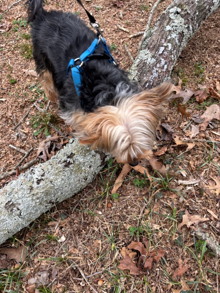The wind has been blowing a lot, so the yard is filled with tree limbs. I like exploring them. They have interesting smells.