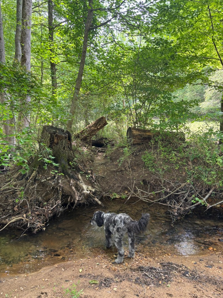 My friend, Beauregard, is a golden doodle. He has a water-resistant undercoat. That explains why he likes to go into the creek when the water is cold. I sure don’t! Brrr. I’ll wait till summer to enjoy the water.