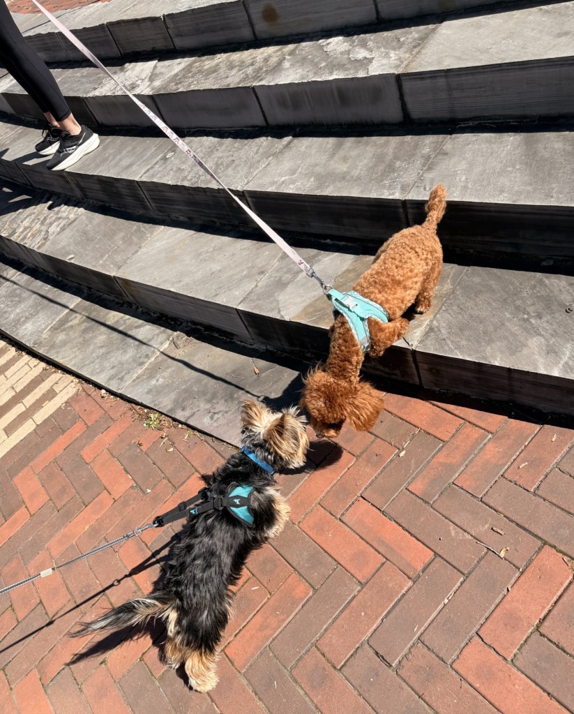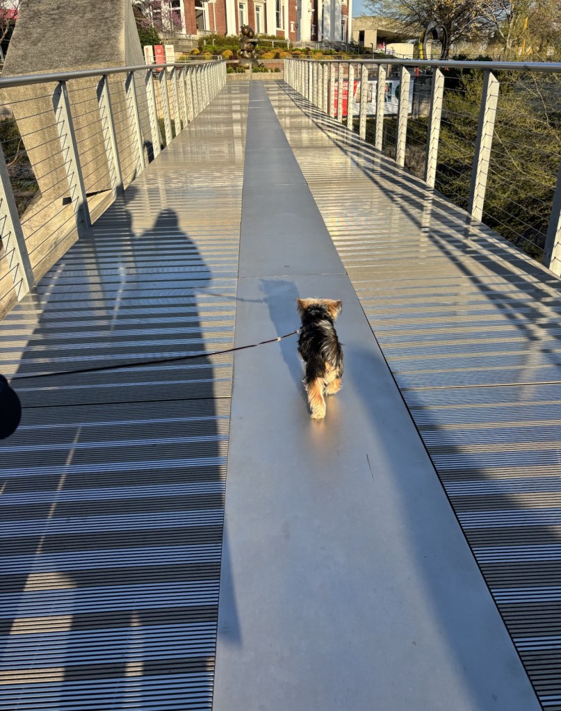 After a lot more time riding in the shoulder carrier, we got to a park where I could walk. I even crossed a big bridge! I felt like such a grownup, traveling, big city dog.