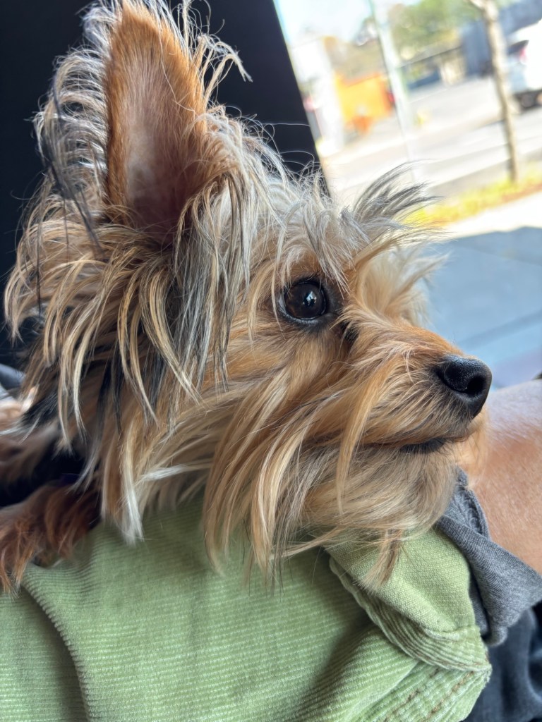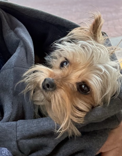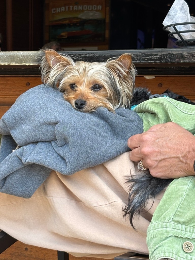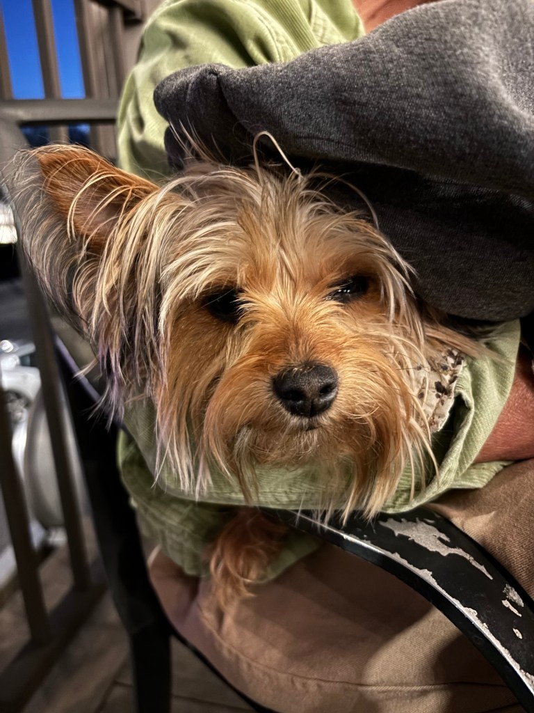 You might wonder why I was so tired when I was sitting in my shoulder carrier most of the day. We Yorkies have such a sensitive nose. We smell tens of thousands of times more than you do. That nose activity is exhausting and calming at the same time.