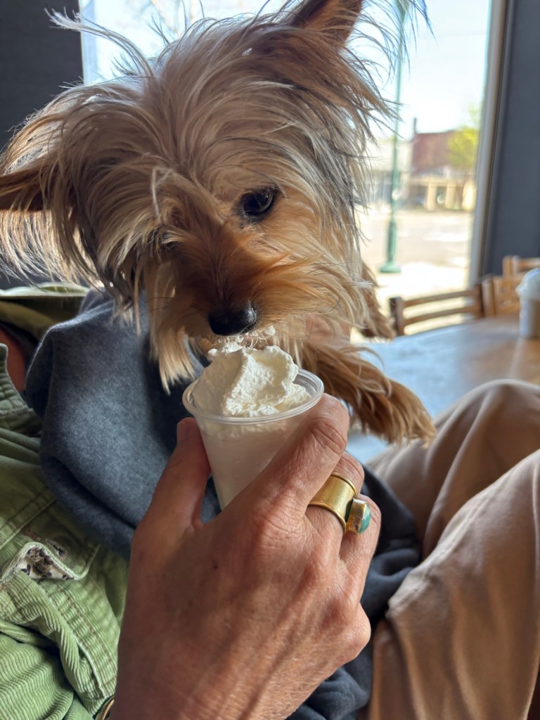 Then Miss Janet got me a surprise. She called it a pup cup. I don’t know what was in it, but it was the coolest, dreamiest-tasting thing I’ve ever had. It was so good! I got it all over my face.