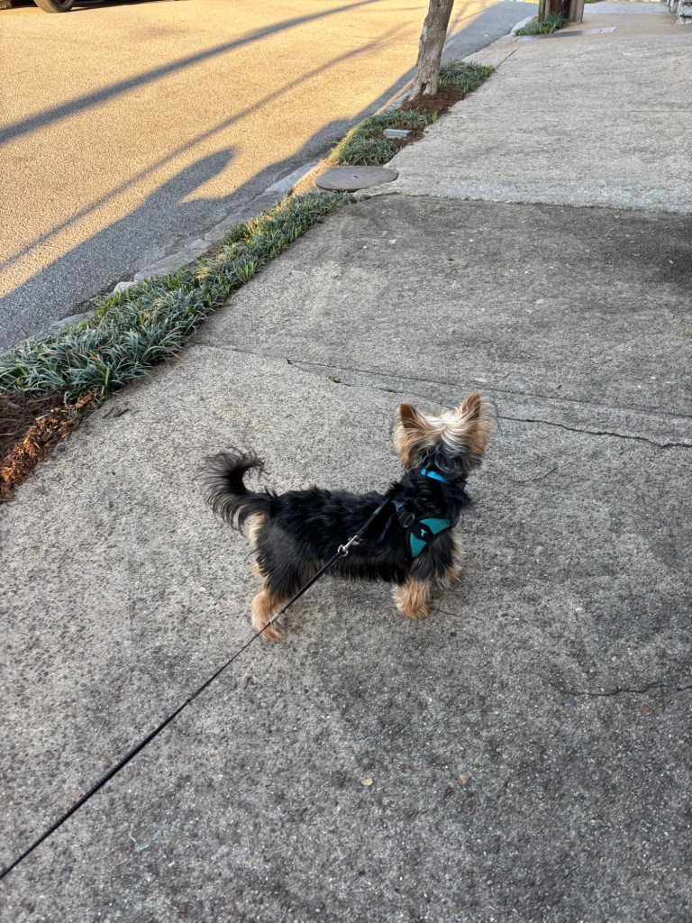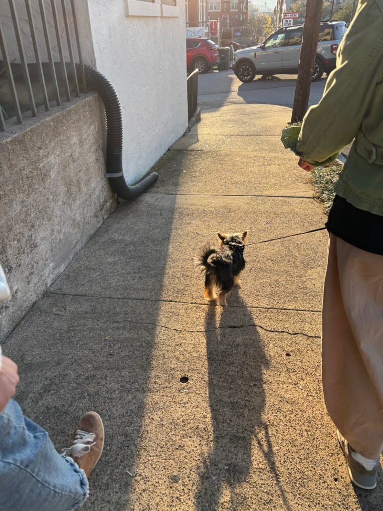 The sidewalk still felt weird on my paws. It’s not the same as farm grass and dirt. It feels kind of rough. But I showed that I can walk calmly in the big city.