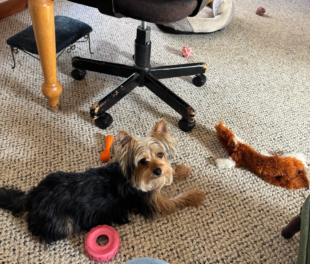 We Yorkies have an inquisitive mind, so we need projects to keep us busy. Otherwise we get really bored and get into trouble. When I can focus on toy engineering, it keeps my mind occupied in a helpful way.