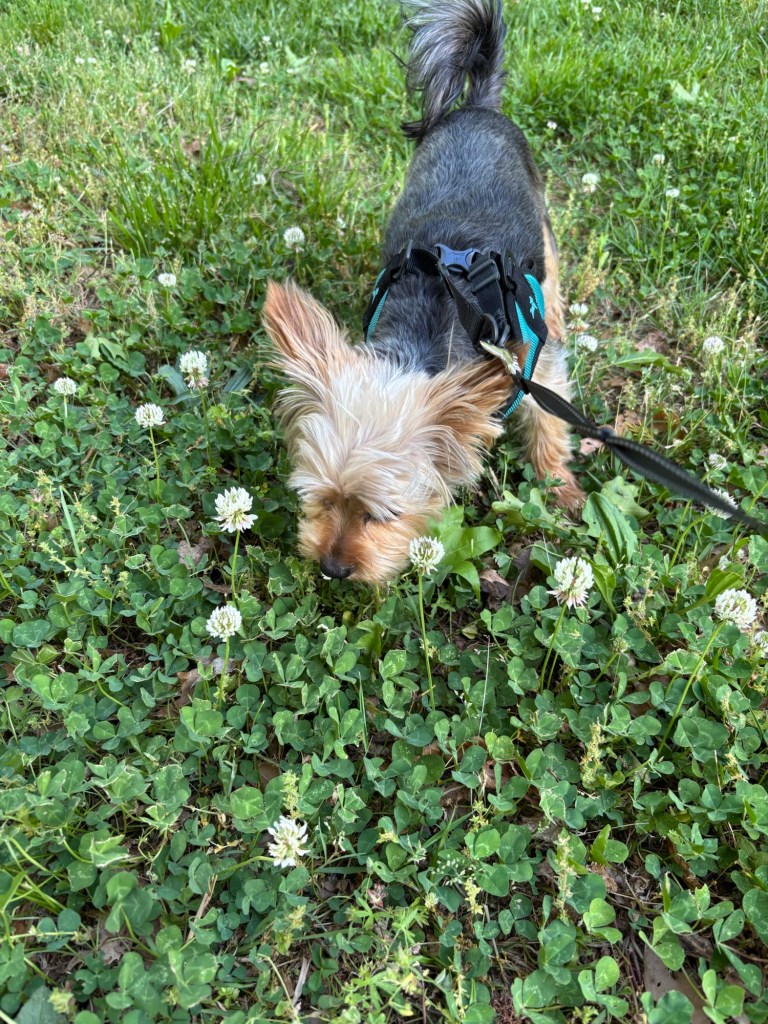 I immediately started trying to remove them. But Miss Janet told me to leave them alone. She said that’s how the clover patch grows every year. And some bugs probably like those blossoms. So I guess I should leave them alone.